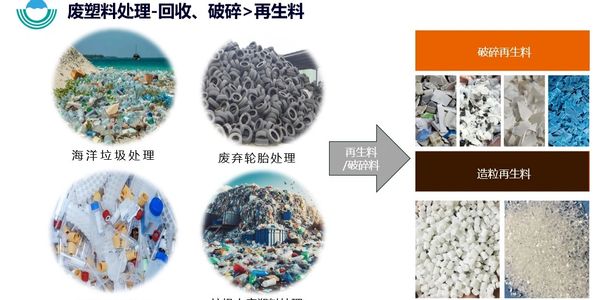 海废、废轮胎、医废及垃圾山废塑料等回收处理,透过分类后制成单一再生料,这种处理后的材料可做为万年木80%原料使用。